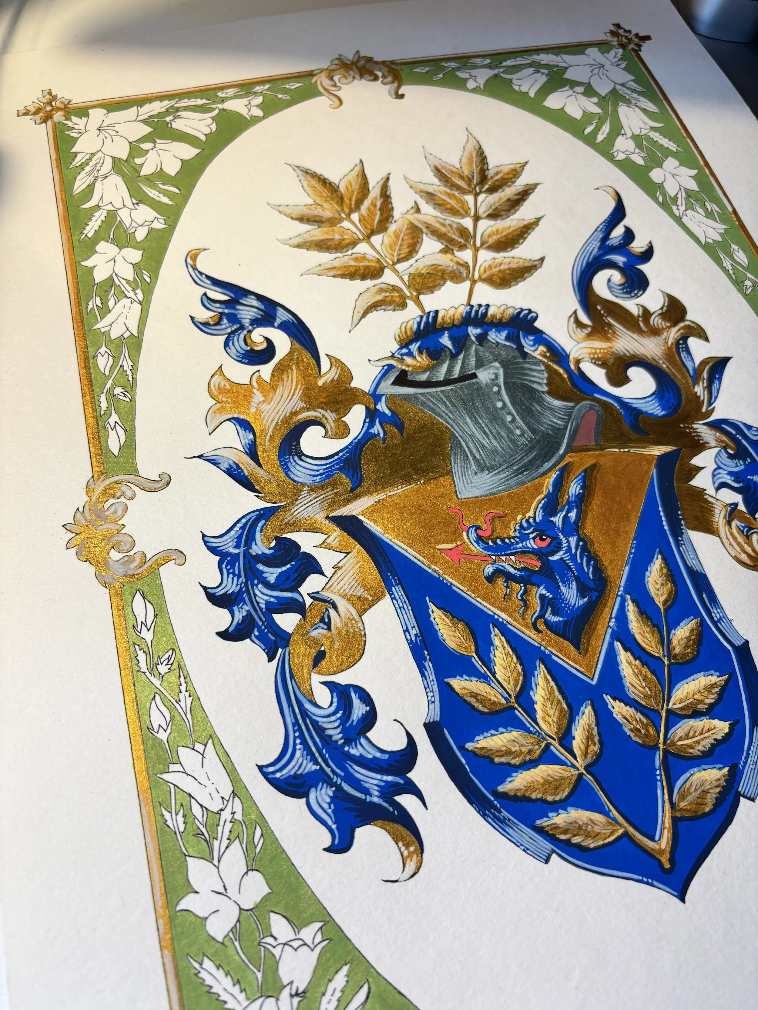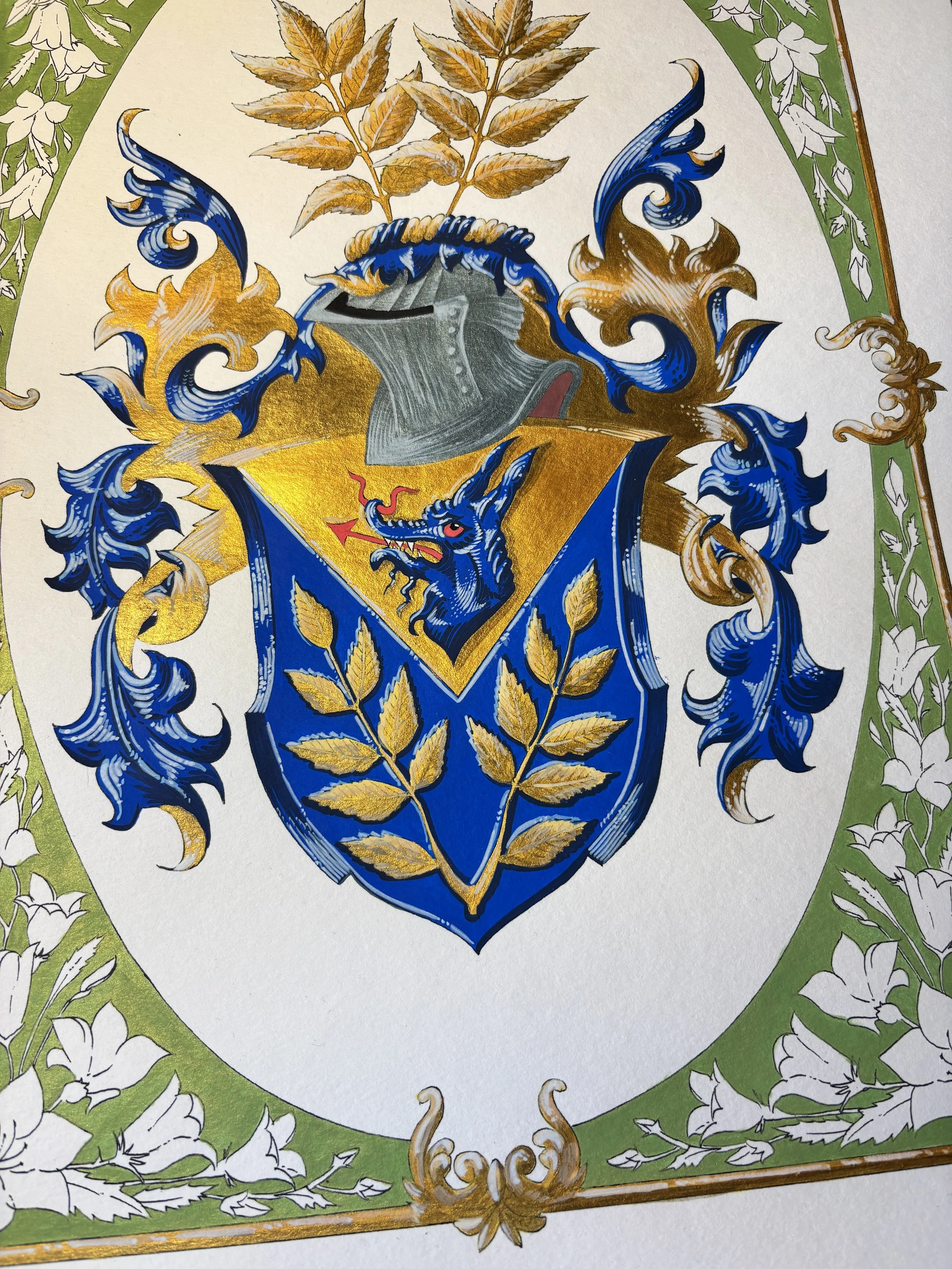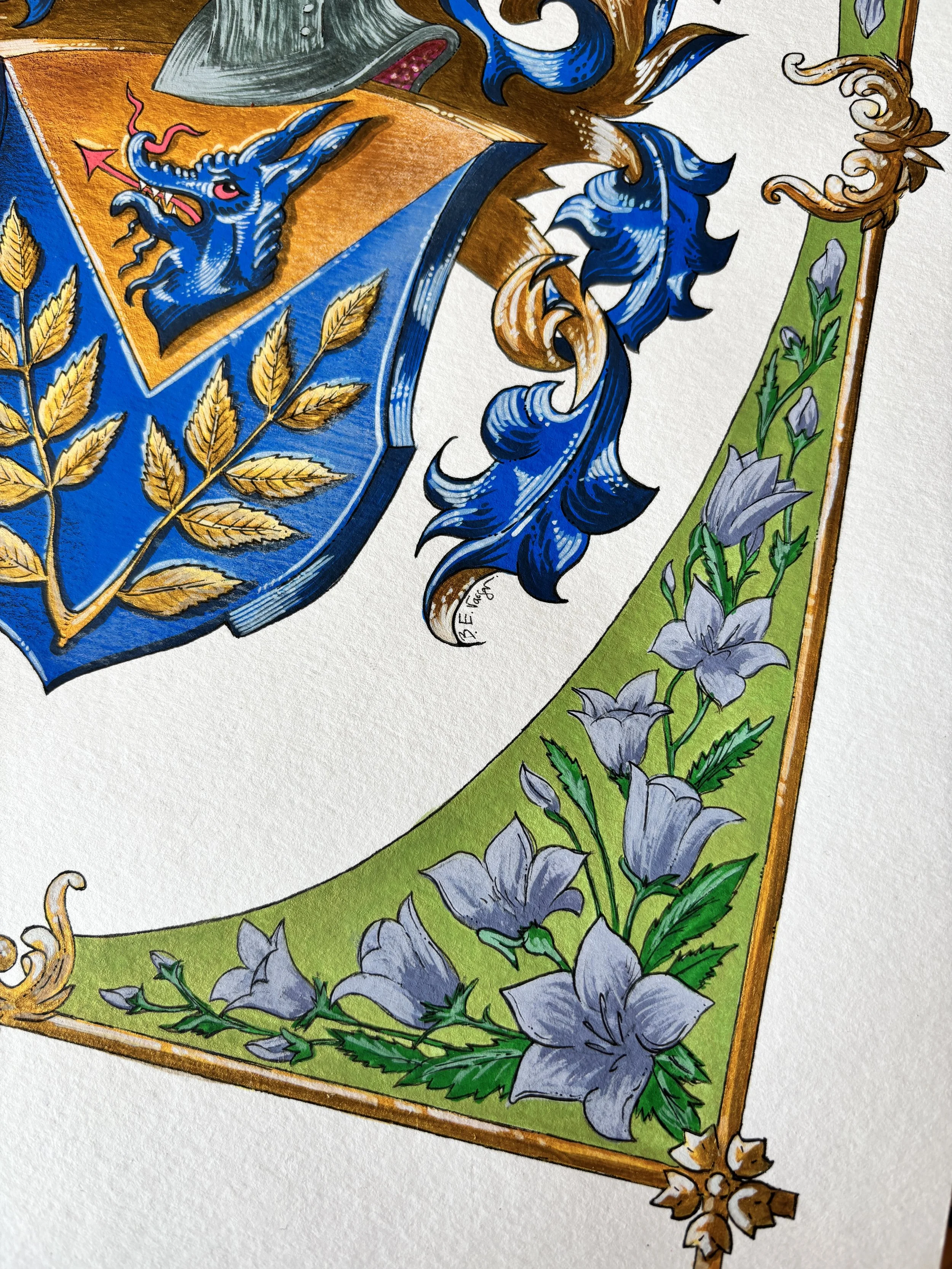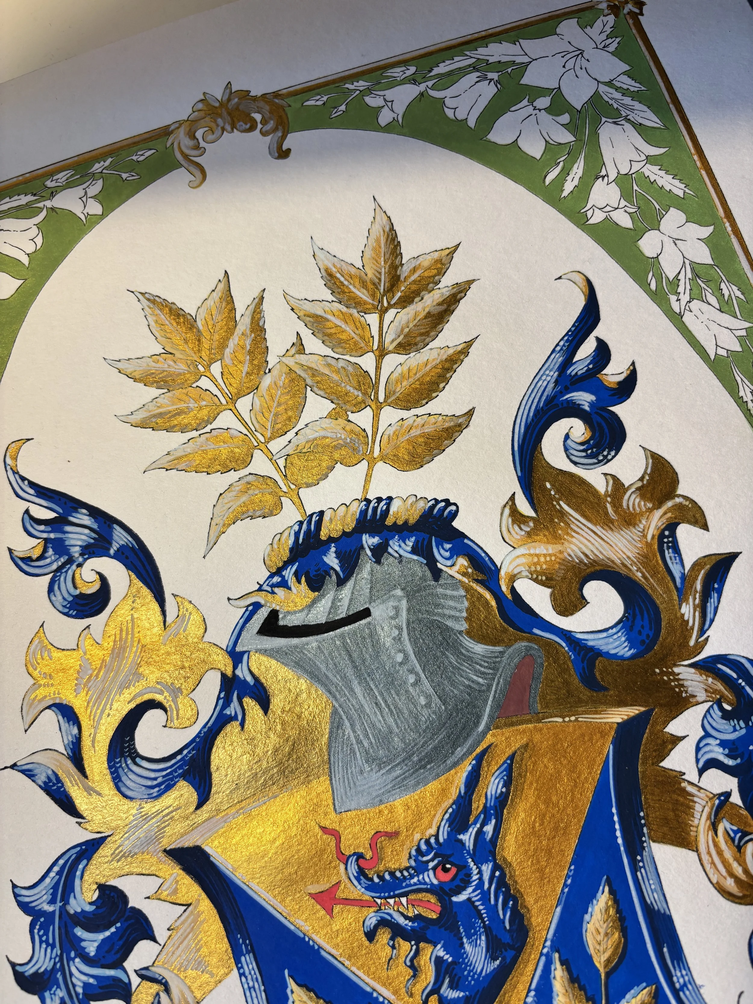Ca parte a acestei distincții, am fost invitați să realizăm o nouă interpretare a unei steme din Cartea de aur al Confreriei — o colecție dedicată păstrării moștenirii artiștilor heraldici și evidențierii talentelor care modelează viitorul acestui domeniu. Pentru această lucrare, am ales stema lui Sture Bergkvist, ilustrată inițial de renumitul heraldist suedez Dr. Jan Erik Raneke.