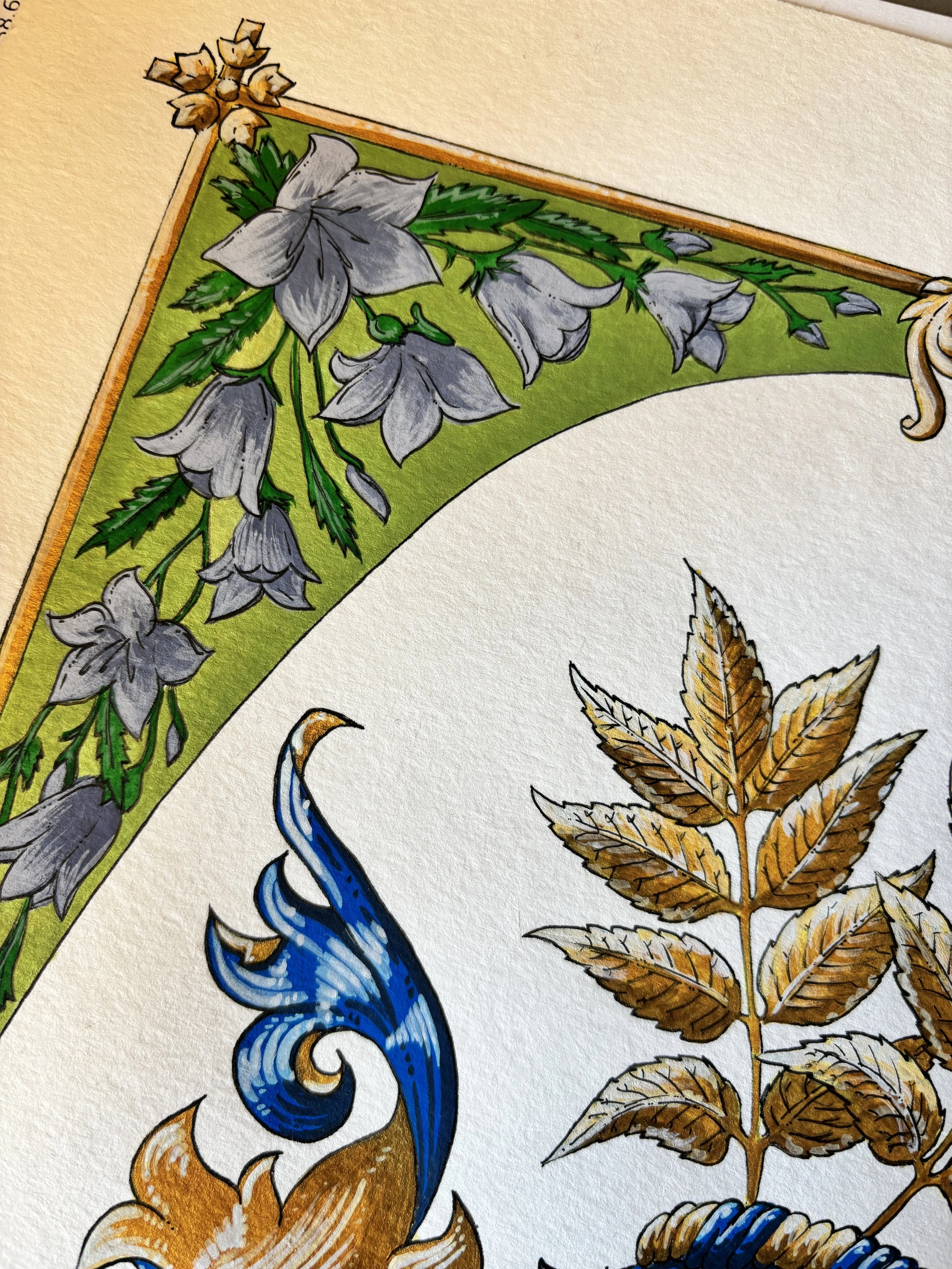 Ca omagiu subtil adus moștenirii suedeze a Dr. Raneke, am inclus în bordură floarea numită clopoțelul albastru (Campanula rotundifolia) — o plantă strâns da subtil asociată cu Suedia. Acest element aduce o referință simbolică discretă, îmbogățind contextul vizual și cultural al lucrării.